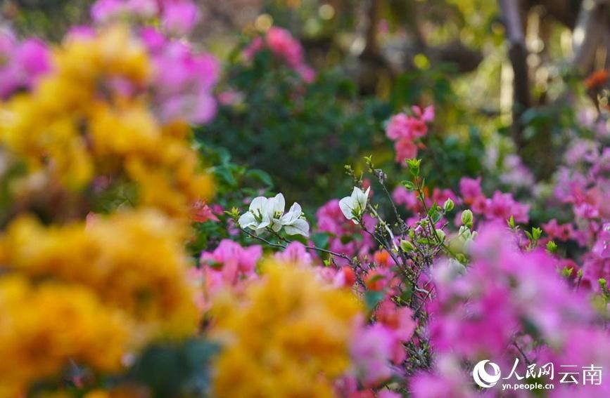 Photo shows blooming bougainvillea at a park in Manlian village in Pu’er, southwest China’s Yunnan Province. (Photo/Zhang Qiping)