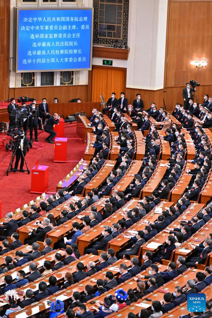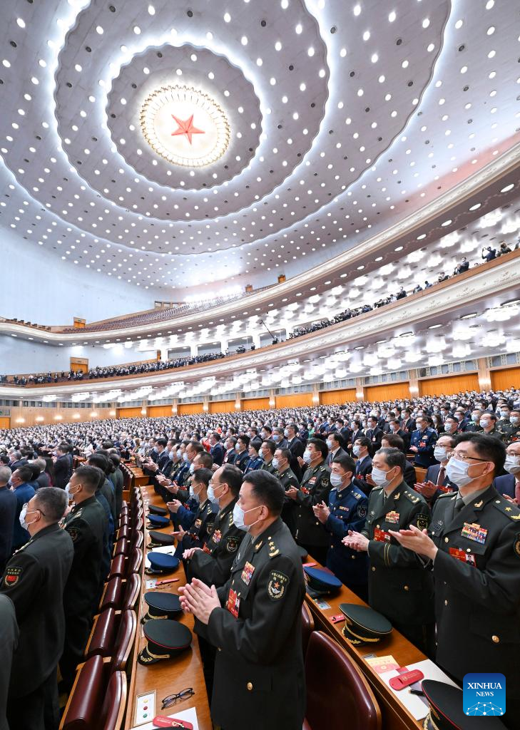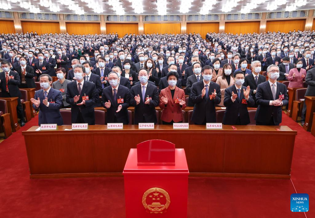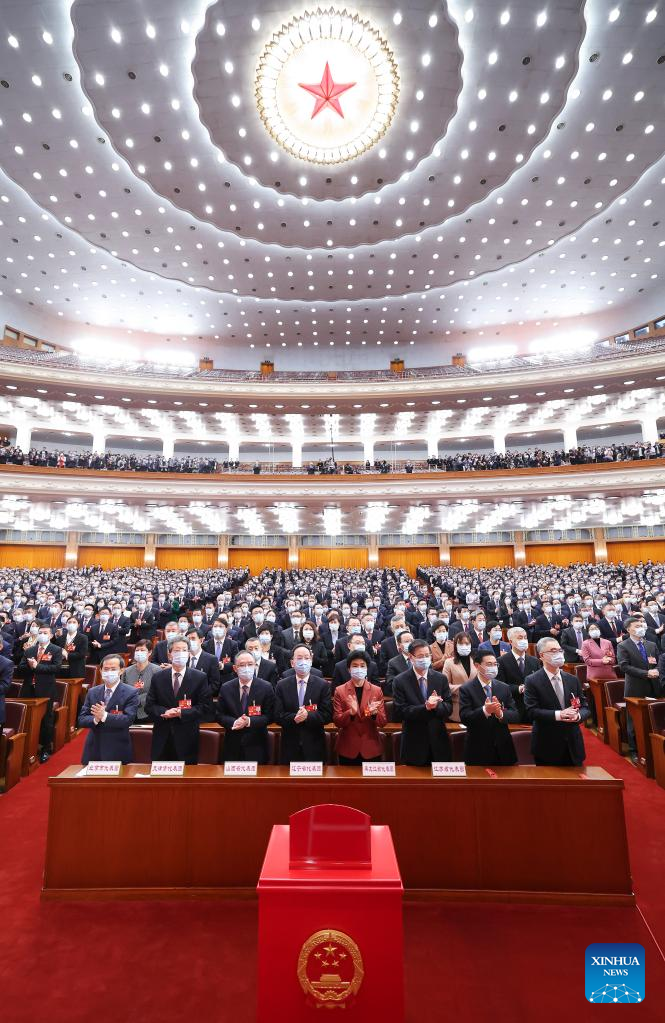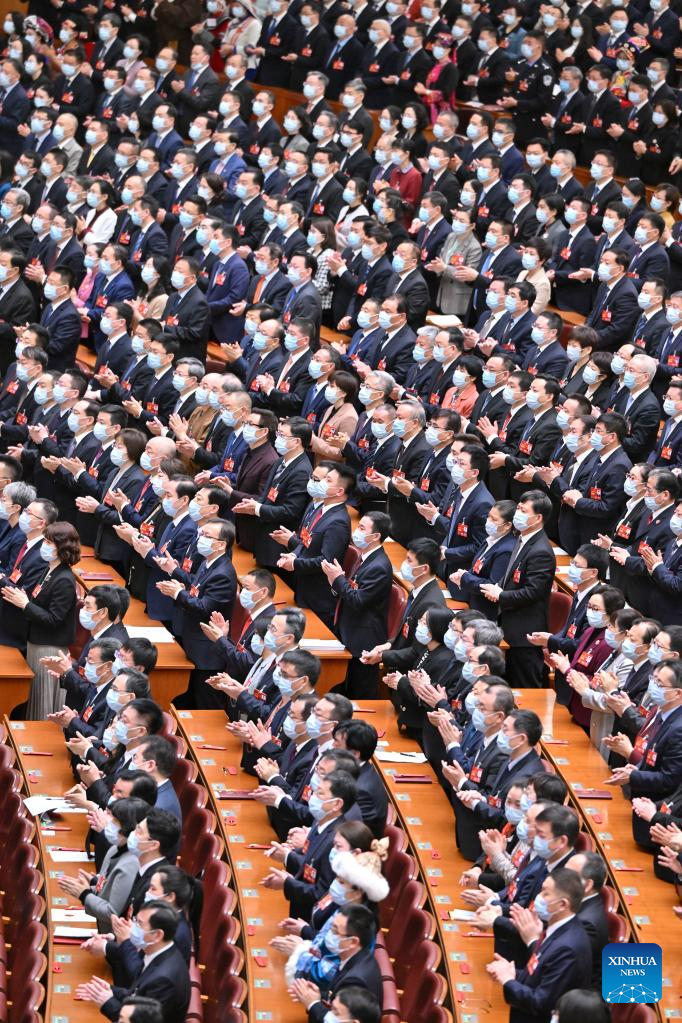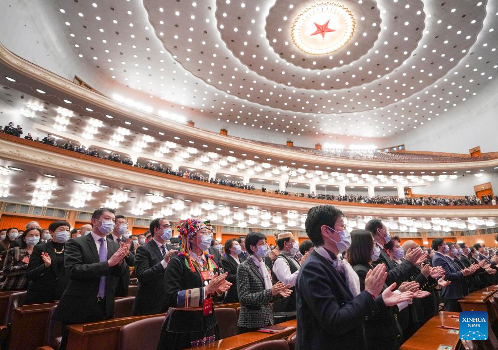 The fourth plenary meeting of the first session of the 14th National People's Congress (NPC) is held at the Great Hall of the People in Beijing, capital of China, March 11, 2023. (Xinhua/Rao Aimin)