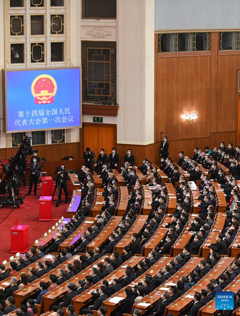 BEIJING, March 11 (Xinhua) -- The 14th National People's Congress (NPC), China's national legislature, started a plenary meeting of its first session Saturday morning to decide on the premier, and vice chairpersons and members of the Central Military Commission of the People's Republic of China.