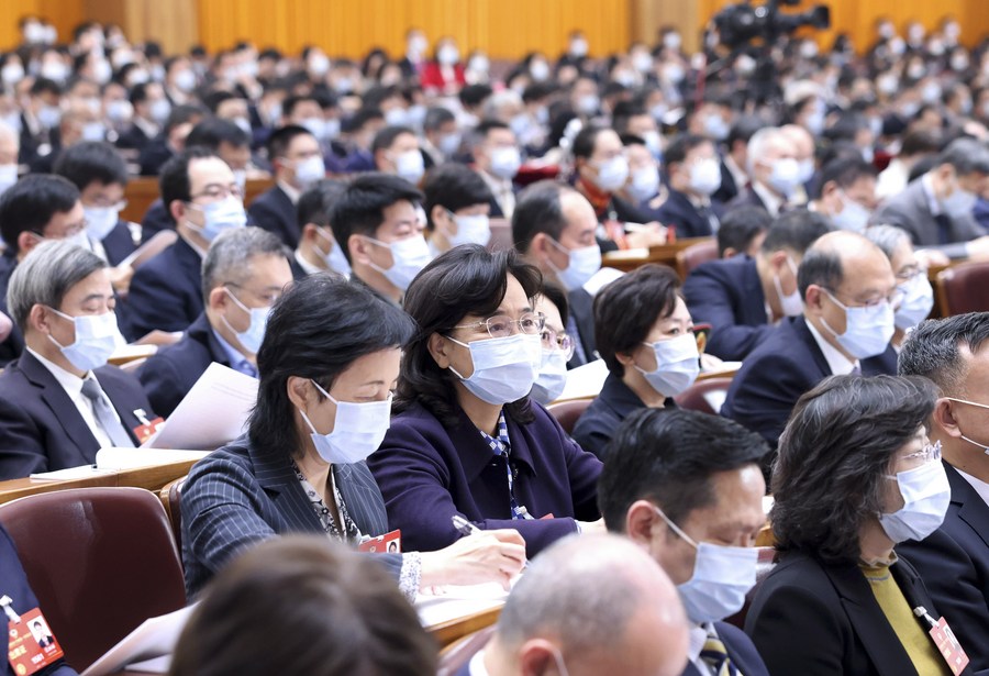 Deputies to the 14th National People's Congress (NPC) attend the second plenary meeting of the first session of the 14th NPC at the Great Hall of the People in Beijing, capital of China, March 7, 2023. (Xinhua/Fei Maohua)