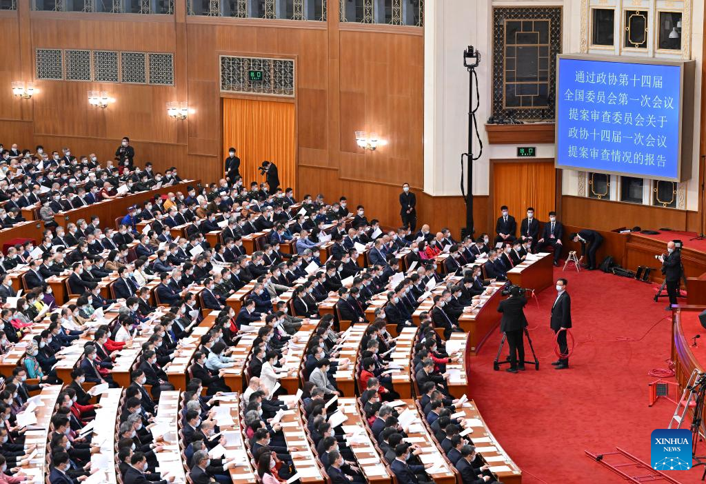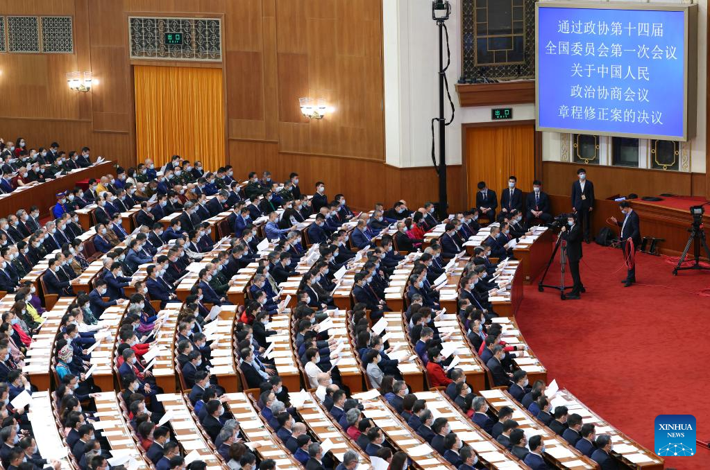 BEIJING, March 11 (Xinhua) -- The 14th National Committee of the Chinese People's Political Consultative Conference (CPPCC), the top political advisory body, concluded its first session Saturday, calling for efforts to pool wisdom and strength to help accomplish the goals and tasks set at the 20th National Congress of the Communist Party of China (CPC).