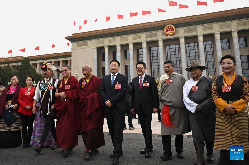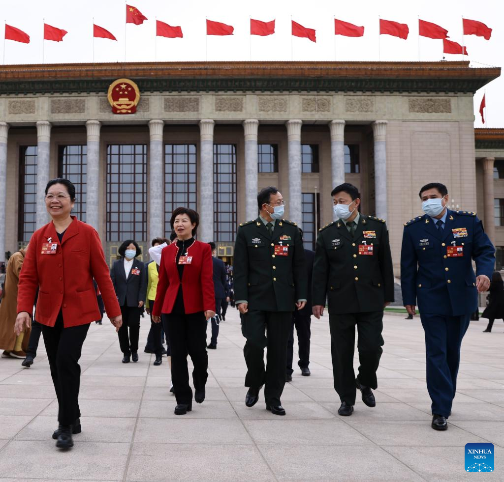 Members of the 14th National Committee of the Chinese People's Political Consultative Conference (CPPCC) leave the Great Hall of the People after the closing meeting of the first session of the 14th CPPCC National Committee in Beijing, capital of China, March 11, 2023. (Xinhua/Zhang Haofu)