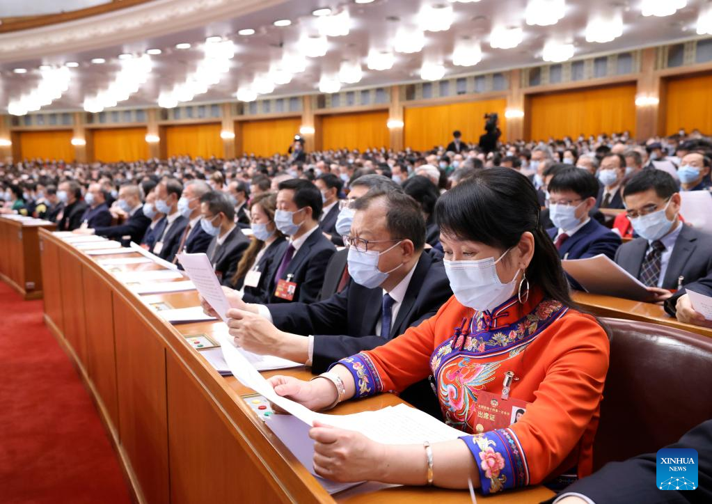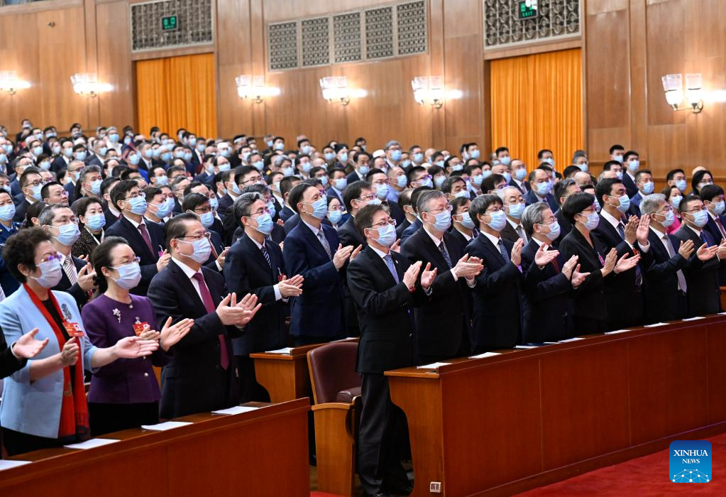 Members of the 14th National Committee of the Chinese People's Political Consultative Conference (CPPCC) attend the closing meeting of the first session of the 14th CPPCC National Committee at the Great Hall of the People in Beijing, capital of China, March 11, 2023. (Xinhua/Shen Hong)
