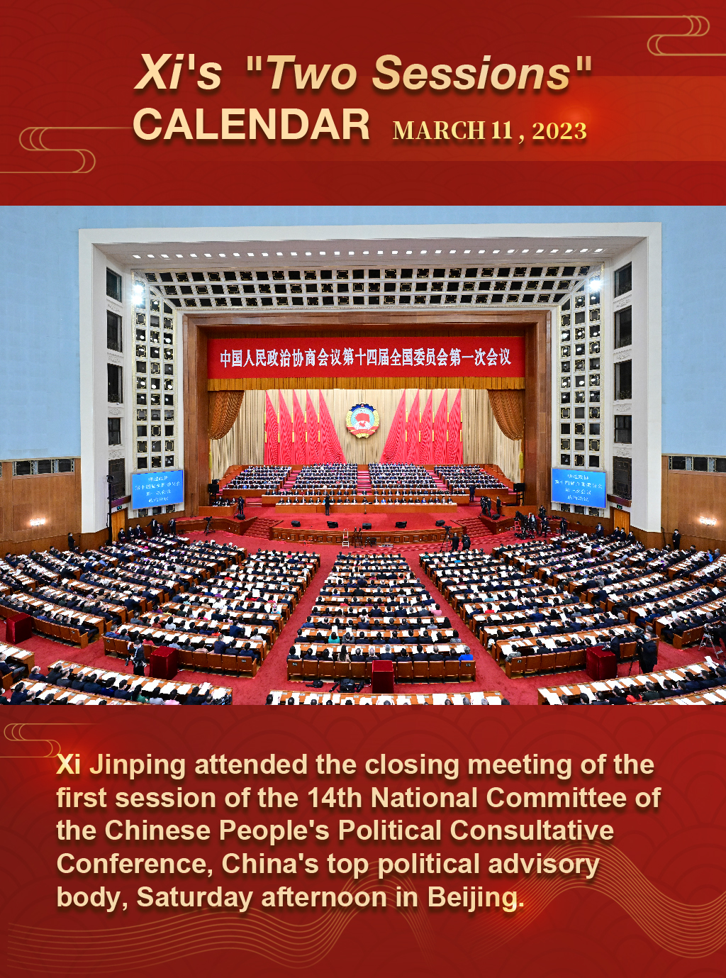 Xi's "Two Sessions" Calendar: Xi attends closing meeting of top political advisory body's annual session