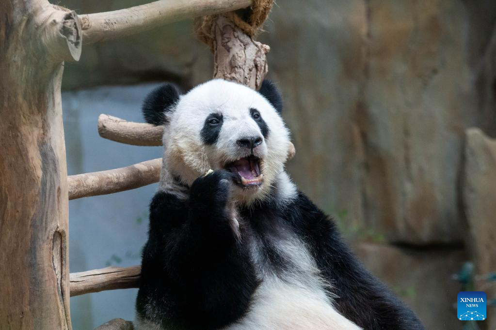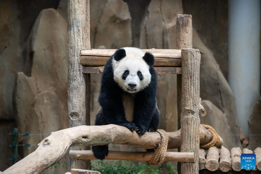 This photo taken on March 11, 2023 shows giant panda Sheng Yi at Zoo Negara near Kuala Lumpur, Malaysia. The Giant Panda Conservation Center in Zoo Negara near Kuala Lumpur is currently home to a family of four, including the giant panda father Xing Xing, mother Liang Liang as well as their daughters Yi Yi and Sheng Yi. (Photo by Chong Voon Chung/Xinhua)