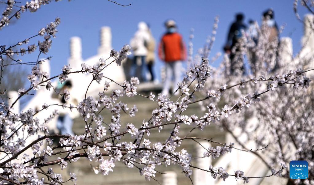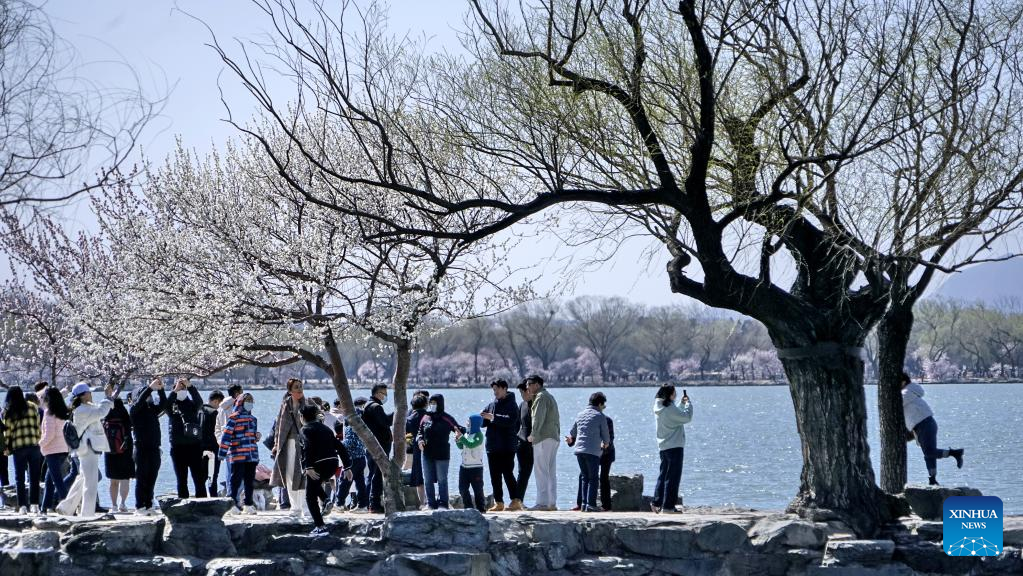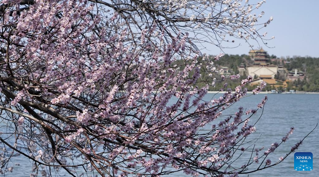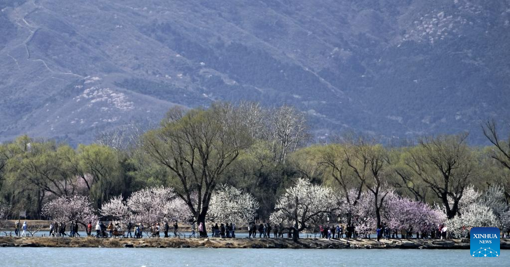 Tourists view blooming flowers at the Summer Palace in Beijing, capital of China, March 12, 2023. (Xinhua/Li Xin)