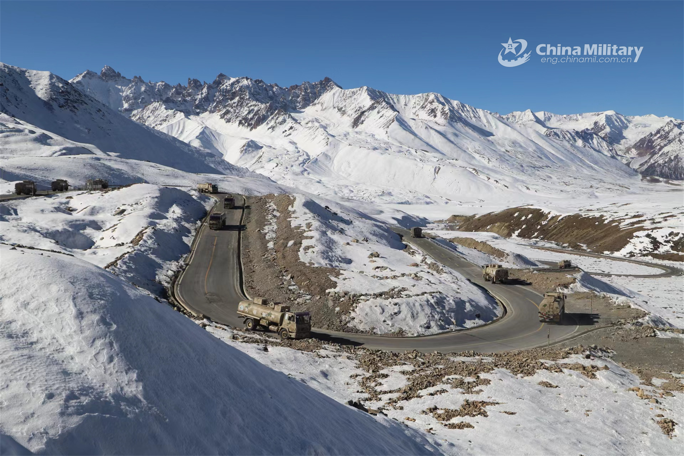Tanker trucks attached to a brigade of the PLA Xizang Military Command maneuver to the designated site on the mountain road to perform a POL (Petroleum, Oil, and Lubricants) transport task in late February, 2023. (eng.chinamil.com.cn/Photo by Gan Yadong)