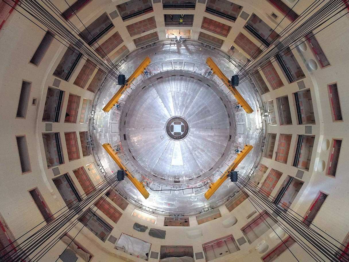 Photo shows the installation of the first piece of the ITER Tomakak Complex on May 26, 2020. (Photo/ITER Organization)