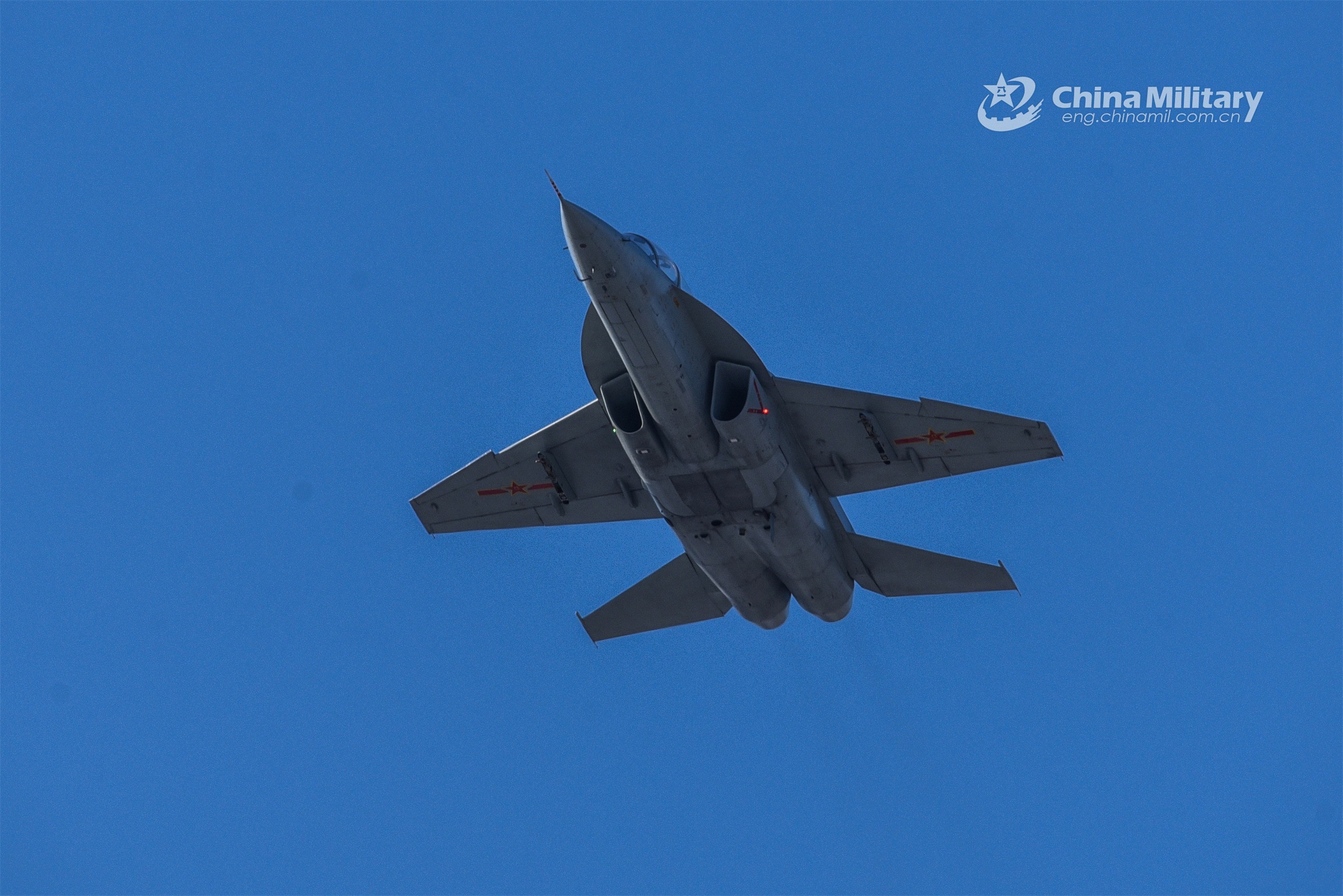 A two-seat JL-10 trainer attached to a regiment of the Naval Aviation University rises up to the sky during a flight training exercise in early February, 2023. (eng.chinamil.com.cn/Photo by Xu Yinglong)