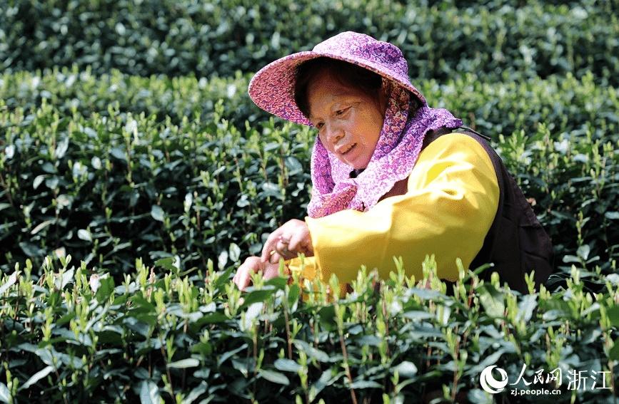 A farmer picks Longjing tea leaves in Longjing village, Hangzhou city, east China’s Zhejiang Province, March 13, 2023. (People’s Daily Online/Fang Pengyimeng)