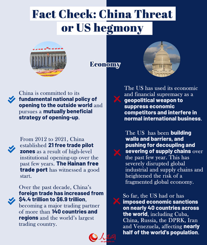 While the US has used its economic and financial supremacy as a geopolitical weapon to suppress economic competitors and interfere in normal international business. Over the past few years, the US has been building walls and barriers, and pushing for decoupling and severing of supply chains. This has severely disrupted global industrial and supply chains and heightened the risk of a fragmented global economy. The US is becoming a major factor threatening the stability and growth of the world economy. The IMF has stated in its recent report that even limited fragmentation could shave 0.2% off of global GDP while a severe fragmentation of the global economy could reduce global economic output by up to 7%.