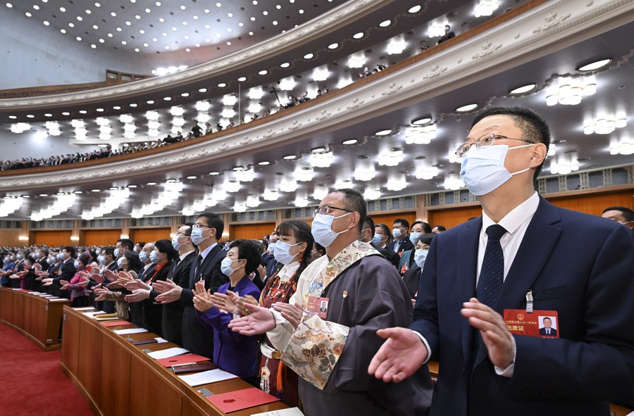 The closing meeting of the first session of the 14th National People's Congress (NPC) is held at the Great Hall of the People in Beijing, the capital of China, March 13, 2023. (Xinhua/Rao Aimin)