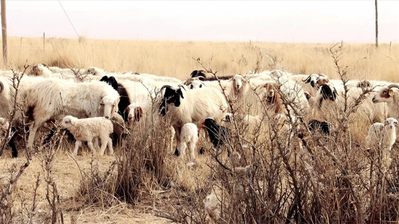 Photo shows a flock of ewes and newborn lambs in a pasture in the Gobi Desert in Mangya city, Haixi Mongolian and Tibetan Autonomous Prefecture, northwest China's Qinghai Province. (Photo/Yixisang)