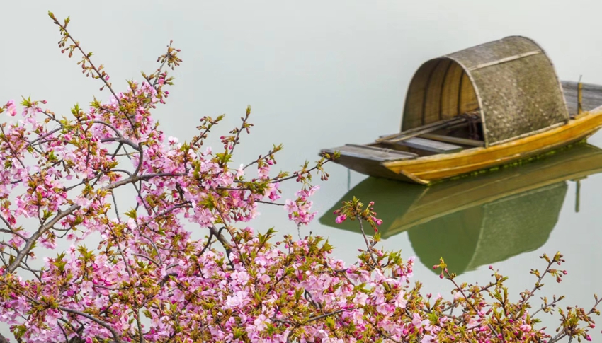 Photo shows early-blooming cherry blossoms at the Shanshui city resort in Binhu district, Wuxi, east China’s Jiangsu Province. (Photo/Liu Nan)