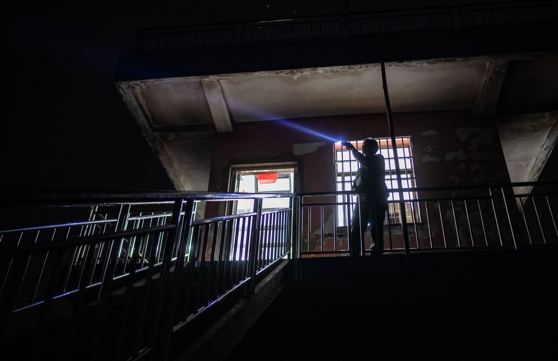 Wang Shigui, a ranger, patrols in a lookout tower on Huamu mountain in Luliang county, Qujing, southwest China’s Yunnan Province, on March 11. (Xinhua/Jiang Wenyao)