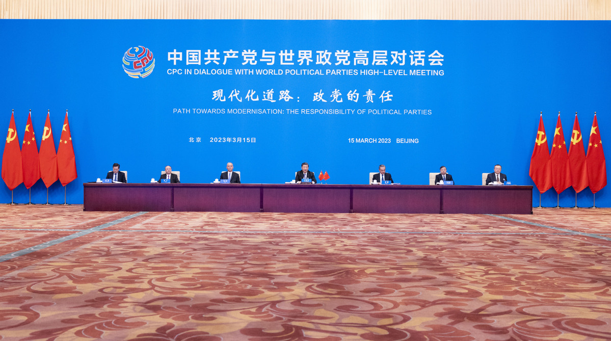 Xi Jinping, general secretary of the Communist Party of China (CPC) Central Committee and Chinese president, attends the CPC in Dialogue with World Political Parties High-Level Meeting via video link and delivers a keynote address in Beijing, capital of China, March 15, 2023. [Photo/Xinhua]