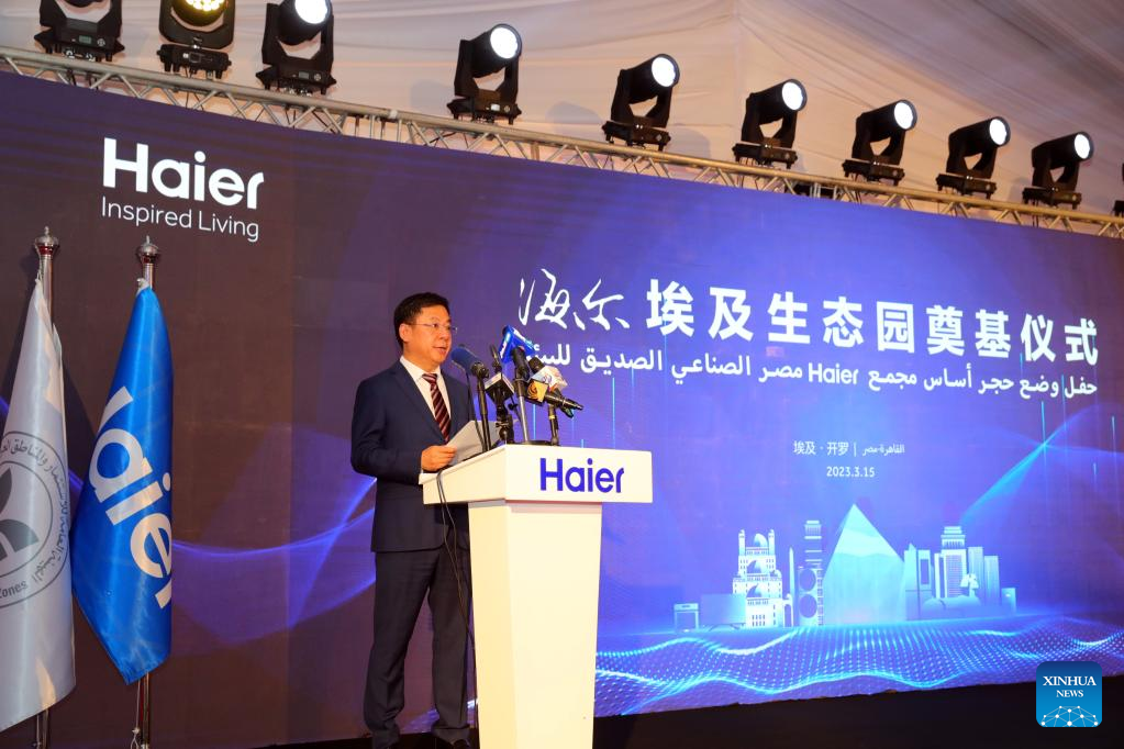 CAIRO, March 15 (Xinhua) -- China's home appliance giant Haier held a groundbreaking ceremony on Wednesday for its first Egyptian factory, aiming to boost the manufacturing industry and provide local jobs in the North African country.