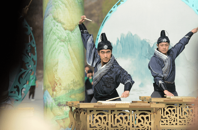 Performers play traditional Chinese music instruments in Yuntai Mountain of Jiaozuo city, central China’s Henan Province. (Photo/Xinhua)