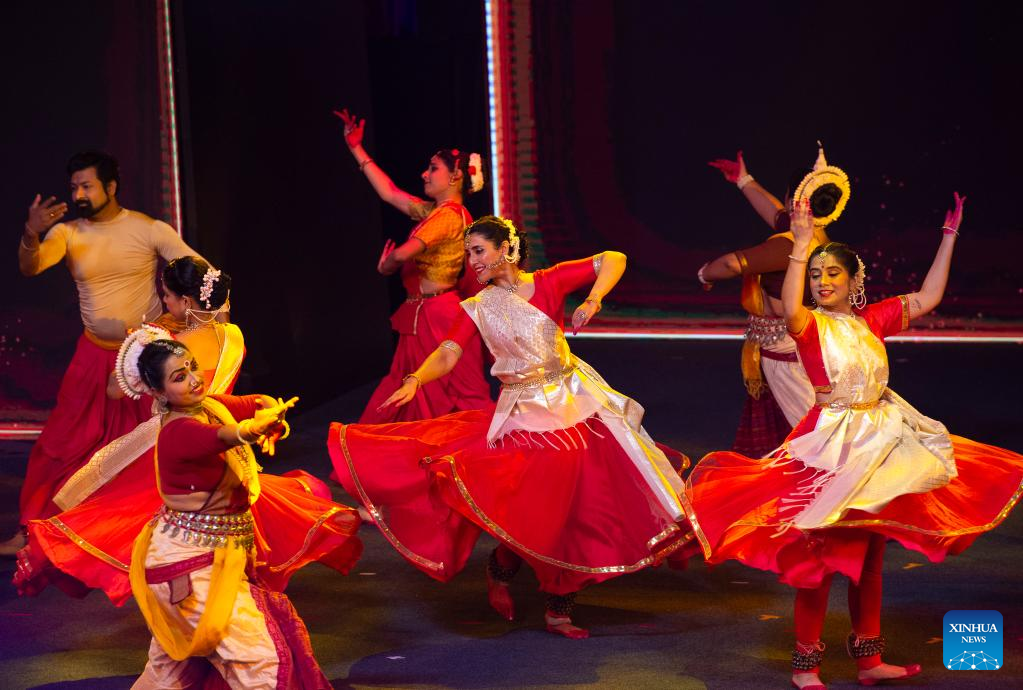 Indian artists perform traditional dance during the opening ceremony of the IBA World Women's Boxing Championships 2023 in New Delhi, India, March 15, 2023. (Xinhua/Javed Dar)