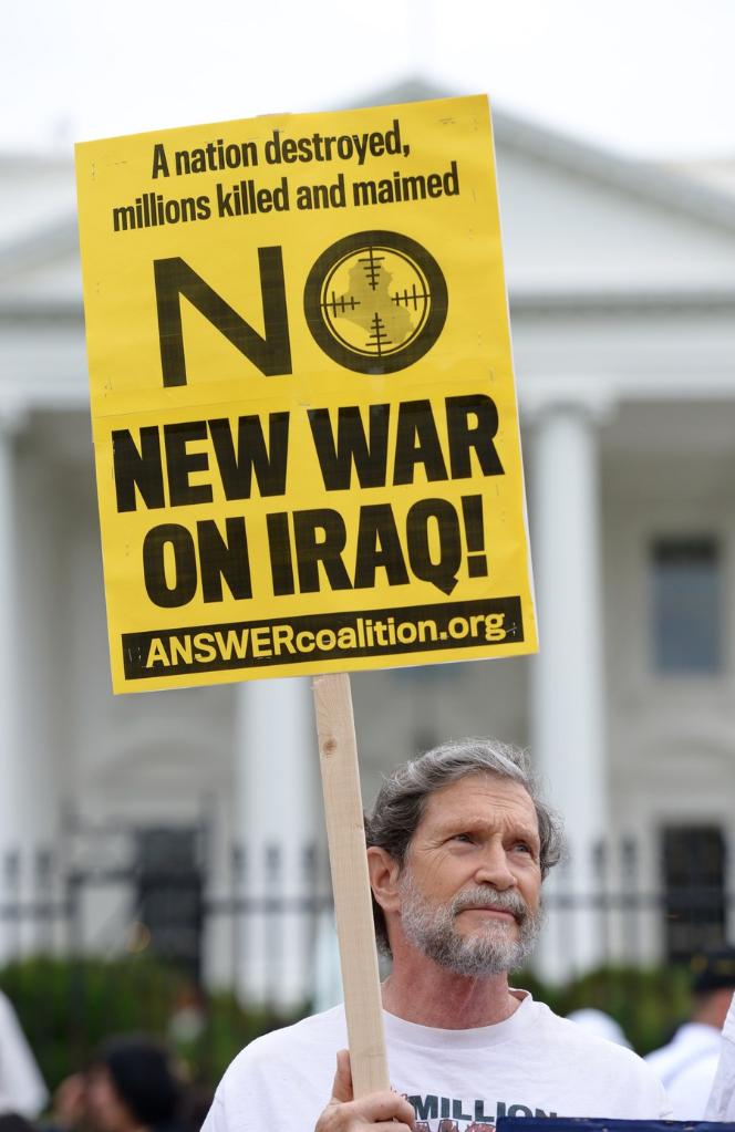 A man participates in a demonstration against war on Iraq outside the White House in Washington, D.C., the United States, on June 21, 2014. (Xinhua/Yin Bogu)