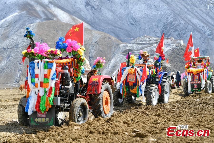 Cultivators are decorated to celebrate the start of this year's plowing season in Lhasa, southwest Tibet Autonomous Region, March 16, 2023. (Photo/China News Service)