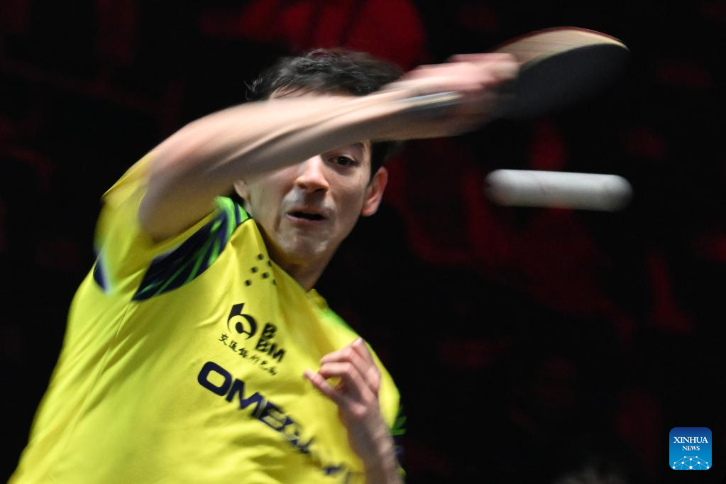 SINGAPORE, March 18 (Xinhua) -- Brazilian paddler Hugo Calderano, the last non-Chinese survivor in the singles draws, fell 4-1 to Olympic champion Ma Long here on Saturday, granting an All-Chinese final in the men's singles at the World Table Tennis (WTT) Singapore Smash.
