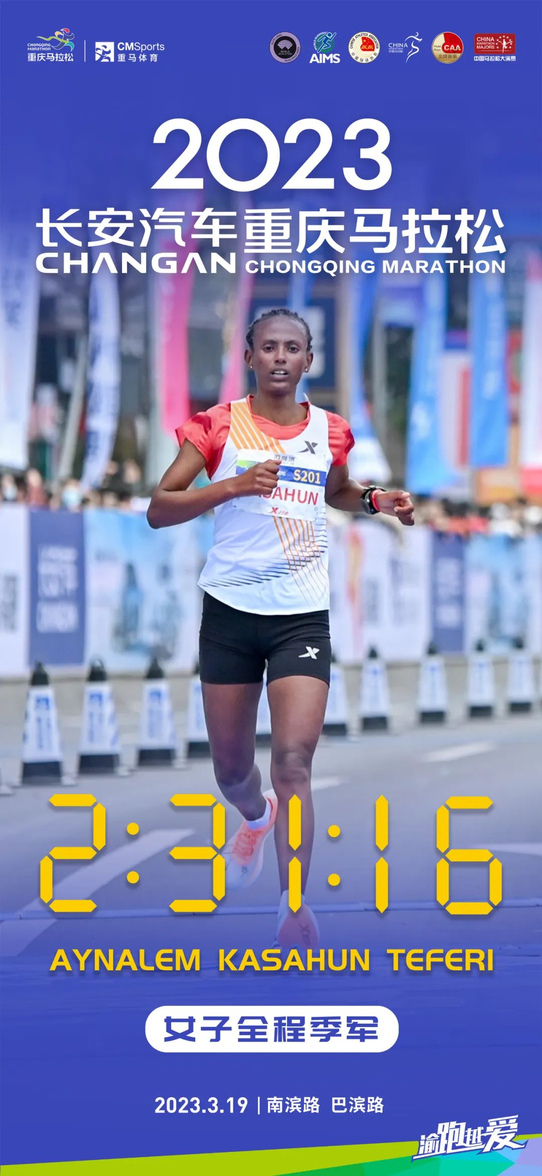 Aynalem Kasahun Teferi from Ethiopia finishes third in the women’s group. (Photo/Chongqing Marathon)