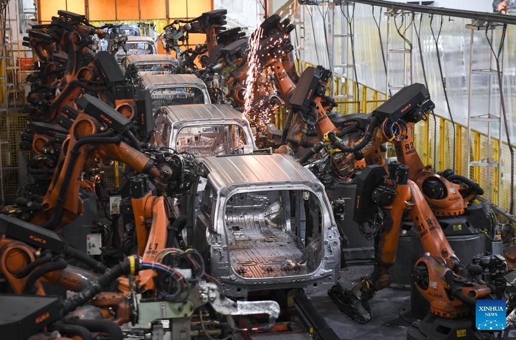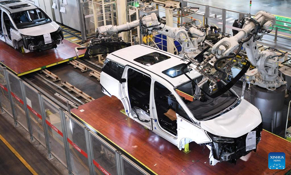 People work at a workshop of GAC Motor in Guangzhou, south China's Guangdong Province, March 20, 2023. (Xinhua/Deng Hua)