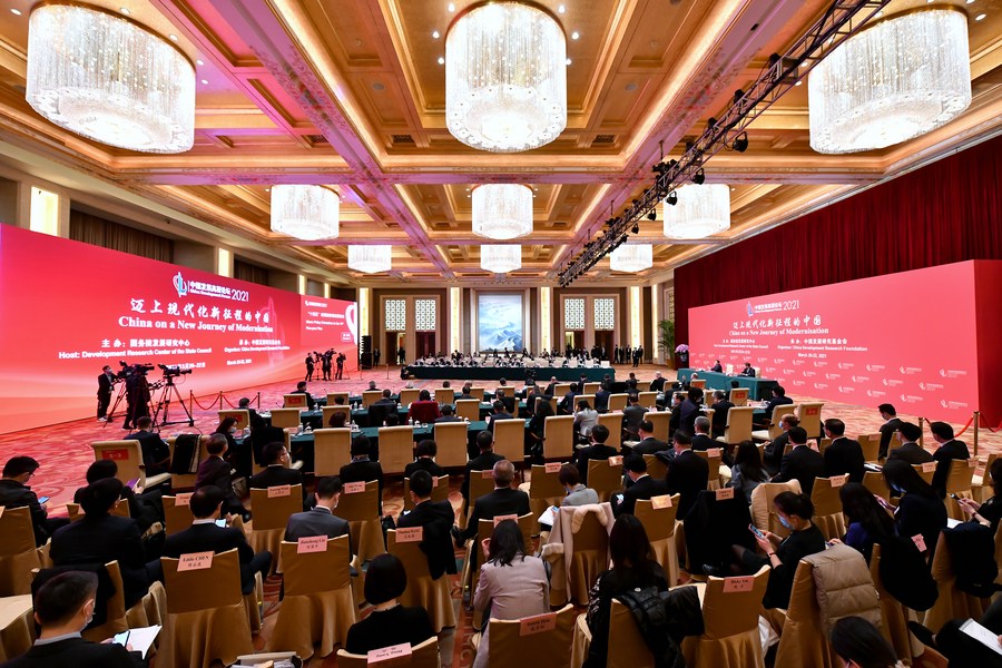 The opening ceremony of the China Development Forum 2021 is held in Beijing, capital of China, March 21, 2021. (Xinhua/Li Xin)