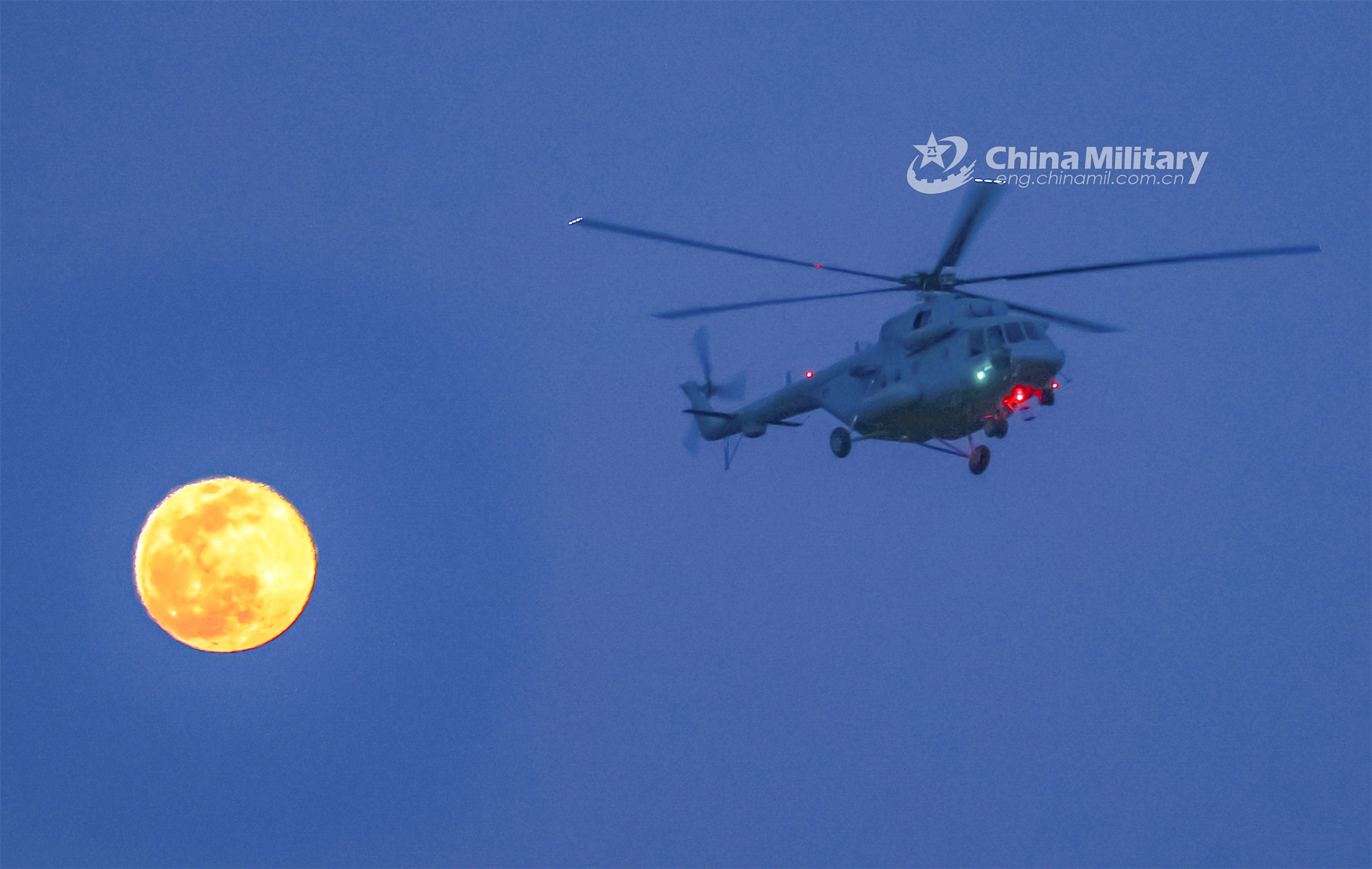 A helicopter attached to a brigade under the PLA Eastern Theater Command participates in a round-the-clock flight training exercise in mid March, 2023. (eng.chinamil.com.cn/Photo by Zhang Huanpeng)