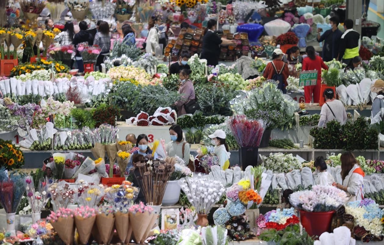The Kunming Dounan Flower Market in Yunnan province, as the only national-level flower trading market in China, sells over 1,600 varieties of flowers under 117 categories every day. Last year, the market sold more than 11 billion stems of fresh-cut flowers, with a turnover of nearly 12.15 billion yuan ($1.76 billion).