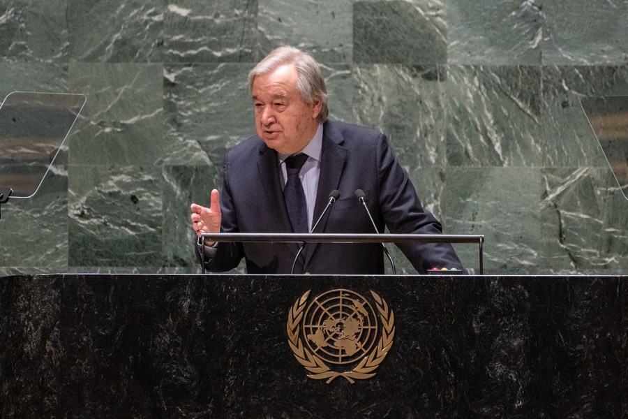 UN Secretary-General Antonio Guterres speaks at a townhall meeting with civil society at the 67th session of the Commission on the Status of Women at the UN headquarters in New York, on March 13, 2023. (Eskinder Debebe/UN Photo/Handout via Xinhua)