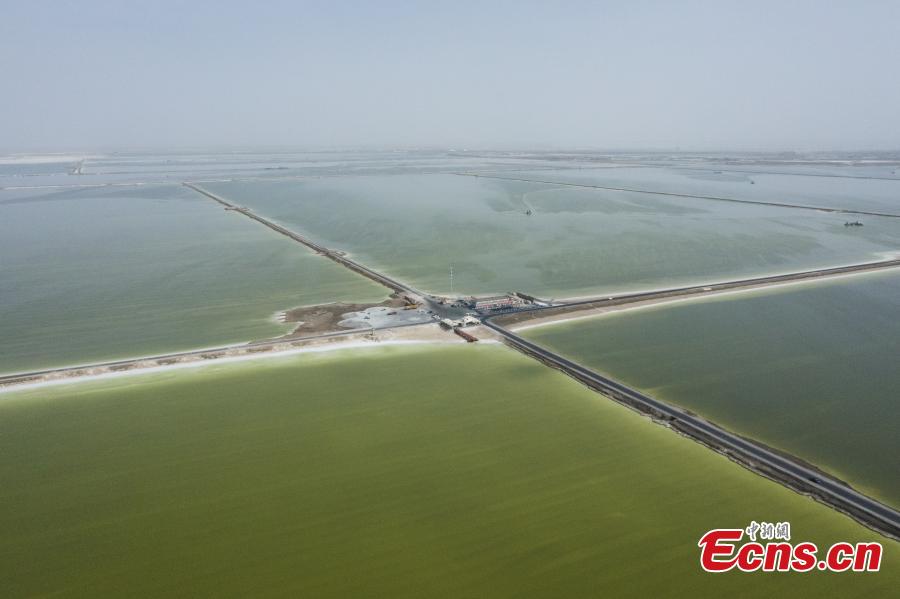Aerial view of emerald-like Qarhan Salt Lake in Haixi Mongolian and Tibetan Autonomous Prefecture, northwest China's Qinghai Province, March 21, 2023. (Photo: China News Service/Ma Mingyan)