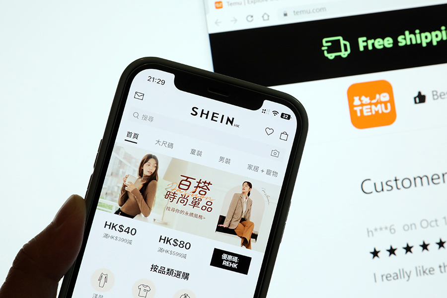 A consumer compares product prices between Temu, an online cross-border marketplace of PDD Holdings, and popular fashion retailer Shein in October. [PHOTO/CHINA DAILY]