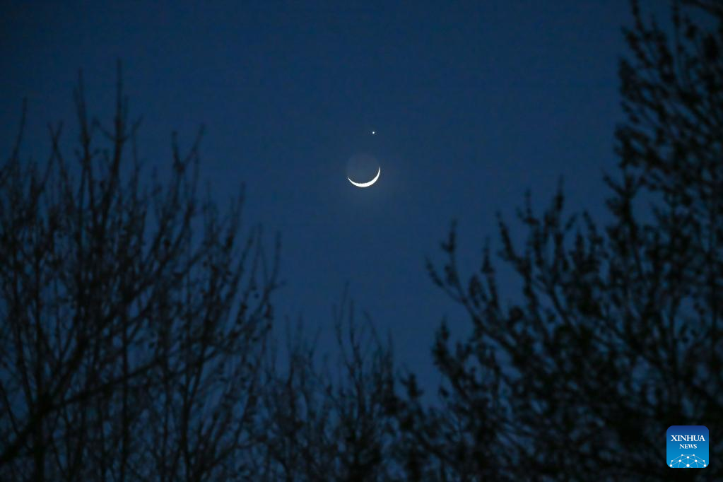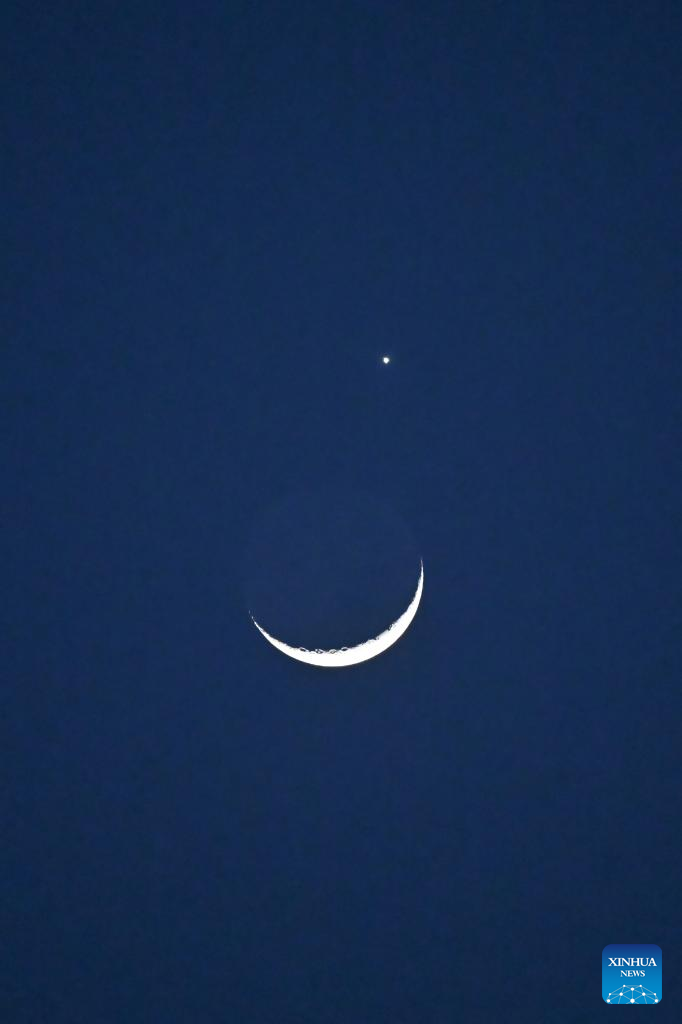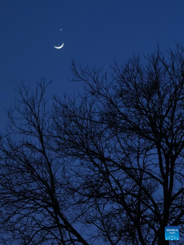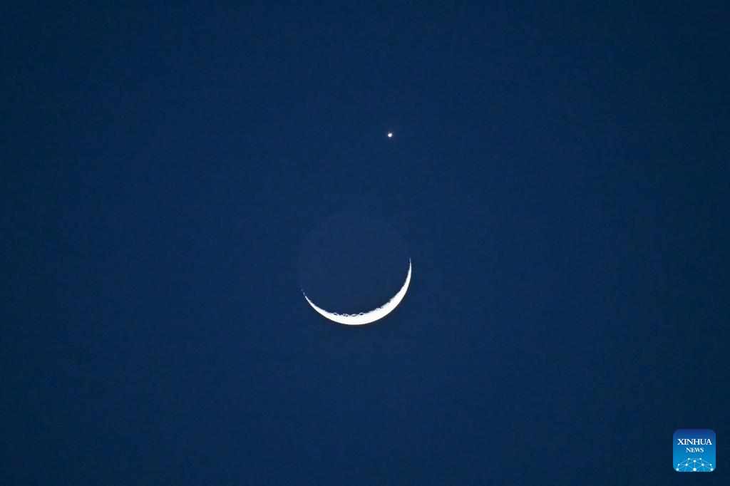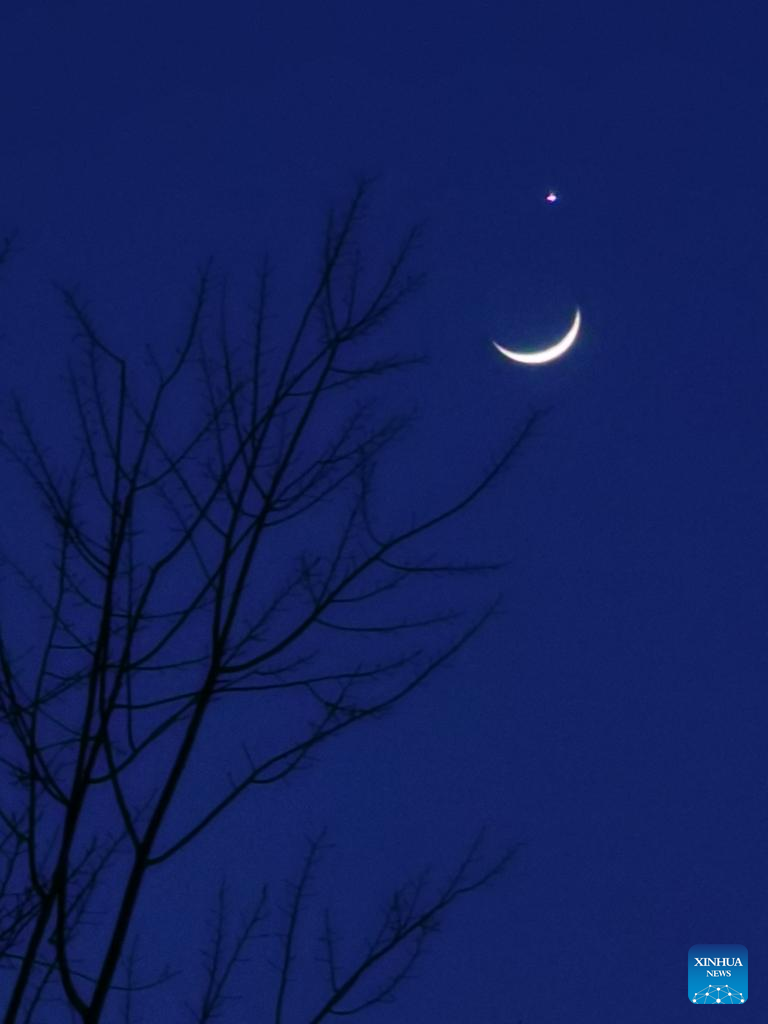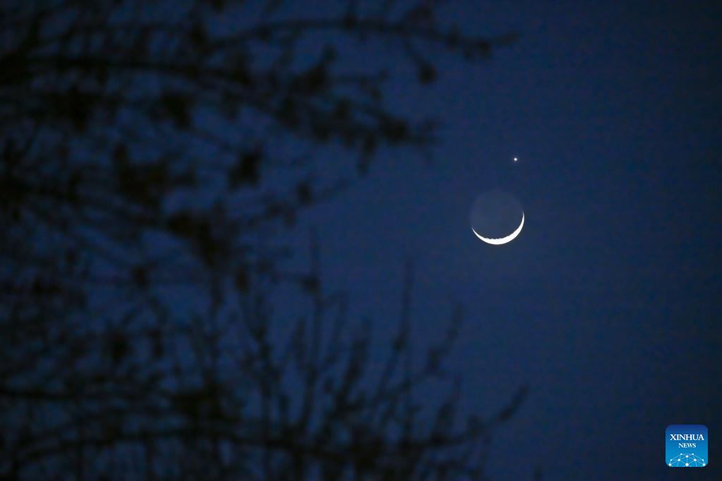 The planet Venus and the crescent moon are pictured in Beijing, capital of China, March 24, 2023. (Xinhua/Li Xin)