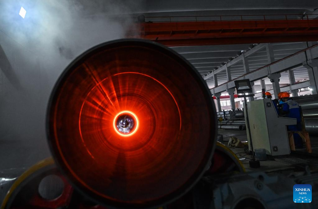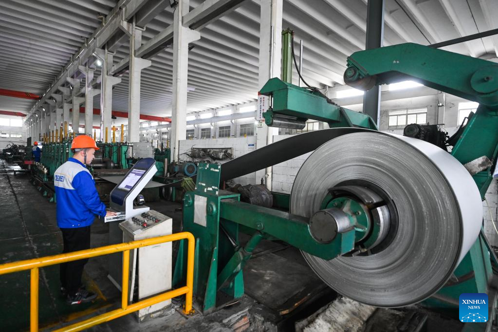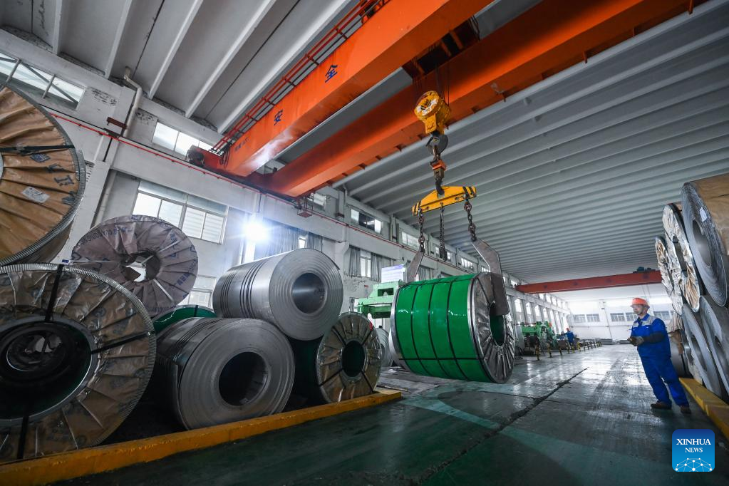 This photo taken on March 23, 2023 shows a workshop of Dewei Stainless Steel in Jiaxing, east China's Zhejiang Province. (Xinhua/Xu Yu)