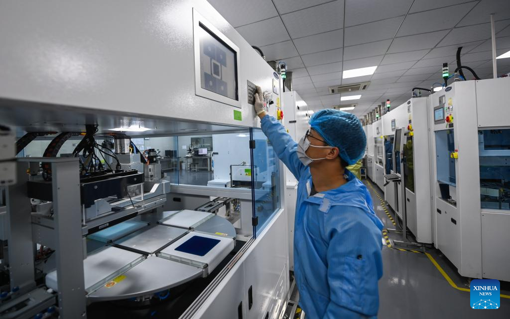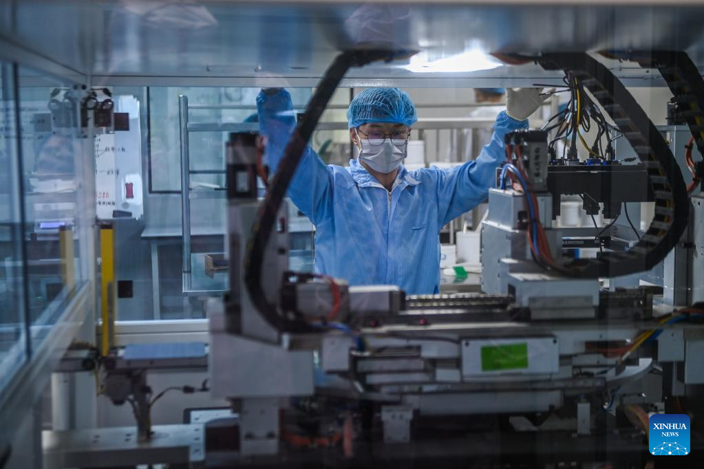 A worker operates an automatic machine at a laboratory of Right Silver in Hangzhou, east China's Zhejiang Province, March 22, 2023. (Xinhua/Xu Yu)