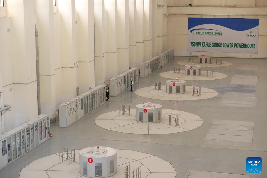This photo taken on March 24, 2023 shows generator sets at the Kafue Gorge Lower Hydropower Station in Southern Province, Zambia. Zambian President Hakainde Hichilema officially commissioned a Chinese-built hydropower plant, following the switching on of the plant's fifth generator on Friday. (Xinhua/Peng Lijun)