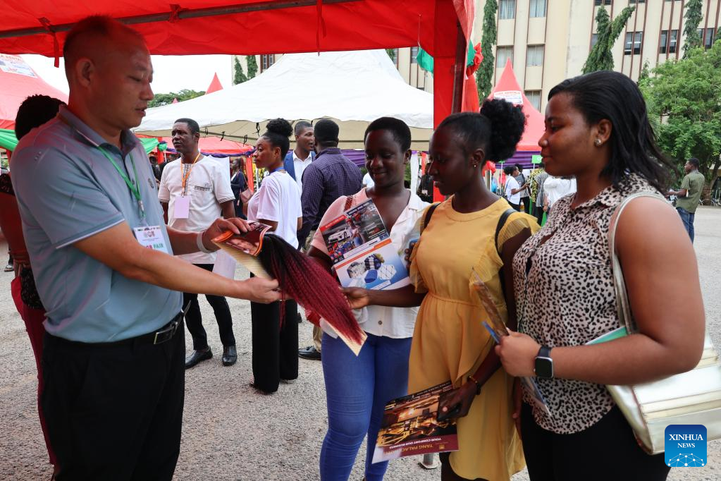 Ghanaian students participate in a job fair hosted by the Confucious Institute at the University of Cape Coast in Cape Coast, Ghana, March 24, 2023. (Photo by Seth/Xinhua)