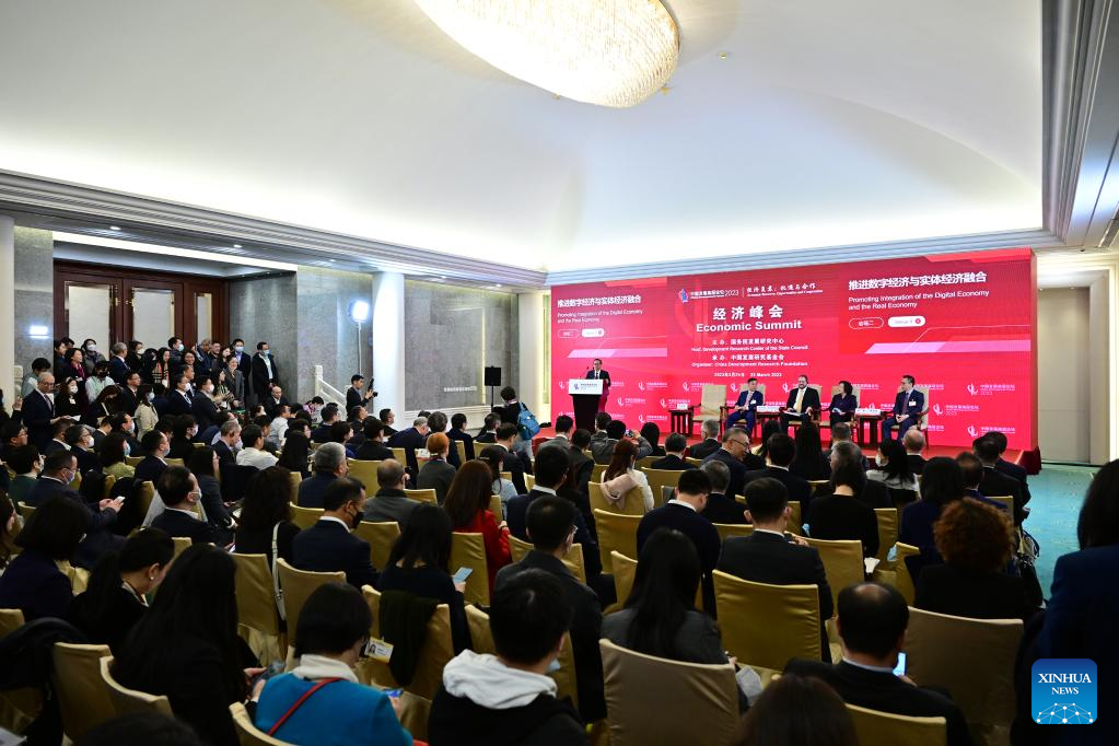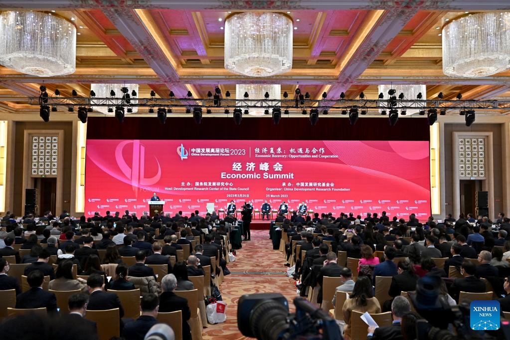 Delegates attend the Economic Summit of the China Development Forum (CDF) 2023 in Beijing, capital of China, March 25, 2023. The Economic Summit of the CDF 2023 was held here on Saturday. Themed "Economic Recovery: Opportunities and Cooperation," the CDF 2023 takes place offline at the Diaoyutai State Guesthouse in Beijing from March 25 to 27. (Xinhua/Li Xin)