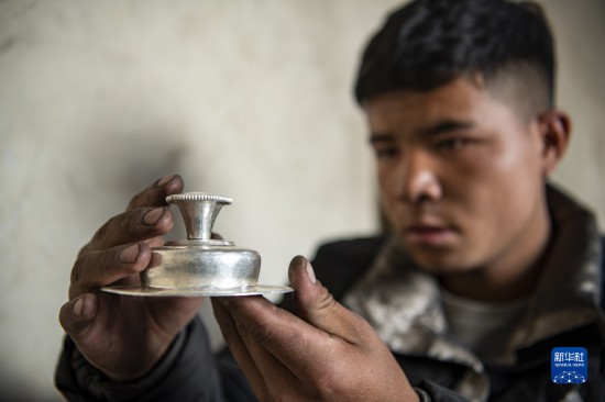 Lhapa Khyungda, head of Zhaxi Jicai Gold, Silver and Bronze Ware Factory, is a representative inheritor of Tibetan metal forging techniques (the gold, silver and copper forging techniques of the Tashi Jicai village), a national intangible cultural heritage, in Shigatse city, southwest China’s Xizang Autonomous Region.