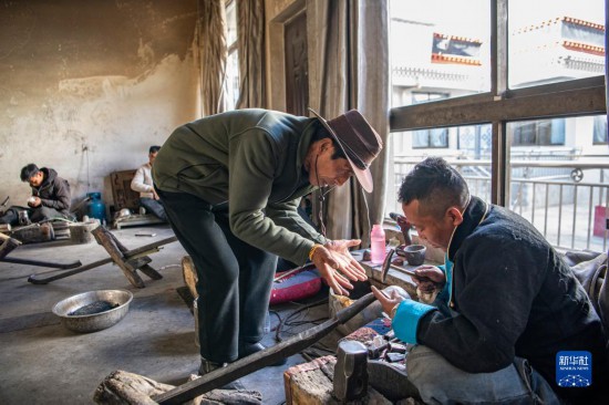 Man inherits traditional Tibetan metal forging techniques in SW China’s Xizang