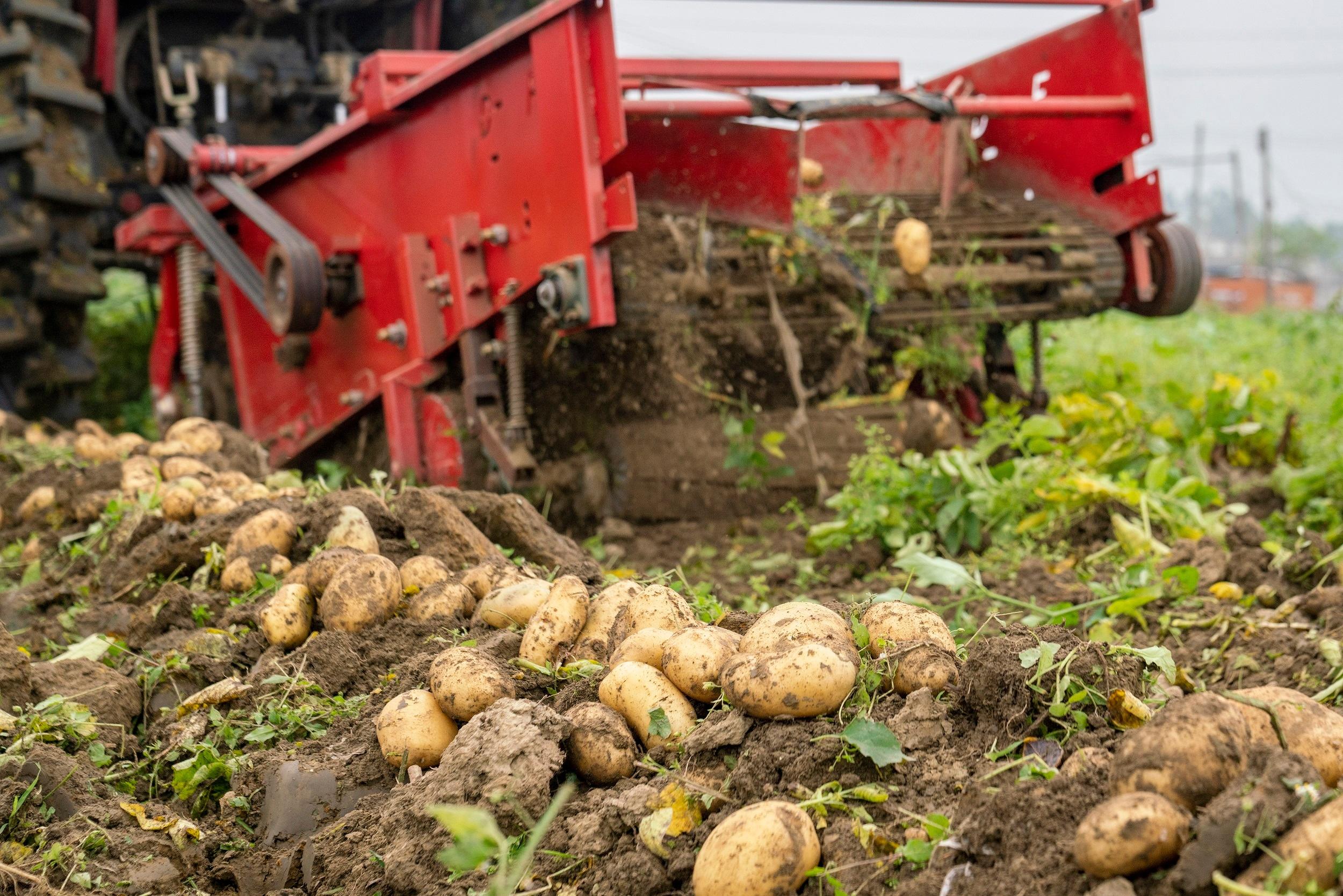 Photo shows a harvester working in a potato field in Tianliang village, Qingxin district, Qingyuan, south China’s Guangdong Province. (Photo/Jiang Yuanwei)
