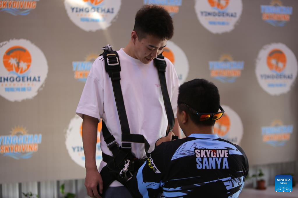 Yin Tao, an Accelerated Free Fall instructor at Ledong Yinggehai Skydiving Center in Ledong Li Autonomous County, believes that when participants jump out of a plane with a parachute, they give full expression to their feelings and personalities, and liberate themselves from their sometimes boring daily routines.
