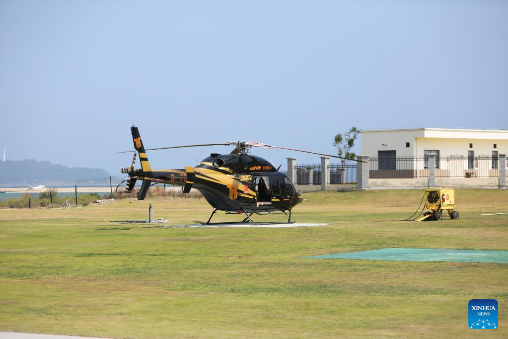 A helicopter is pictured at Sanya Tarhe Skydiving Club in Sanya, south China's Hainan Province, March 14, 2023. (Xinhua/Fan Yuqing)