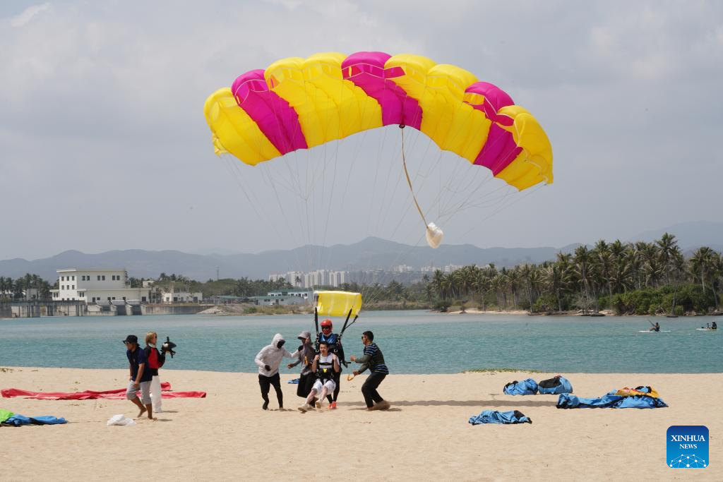 HAIKOU, March 27 (Xinhua) -- "This time I came to Hainan not for the sea, but for the blue sky," Su Na said cheerfully while waiting with her husband for their first skydiving experience.