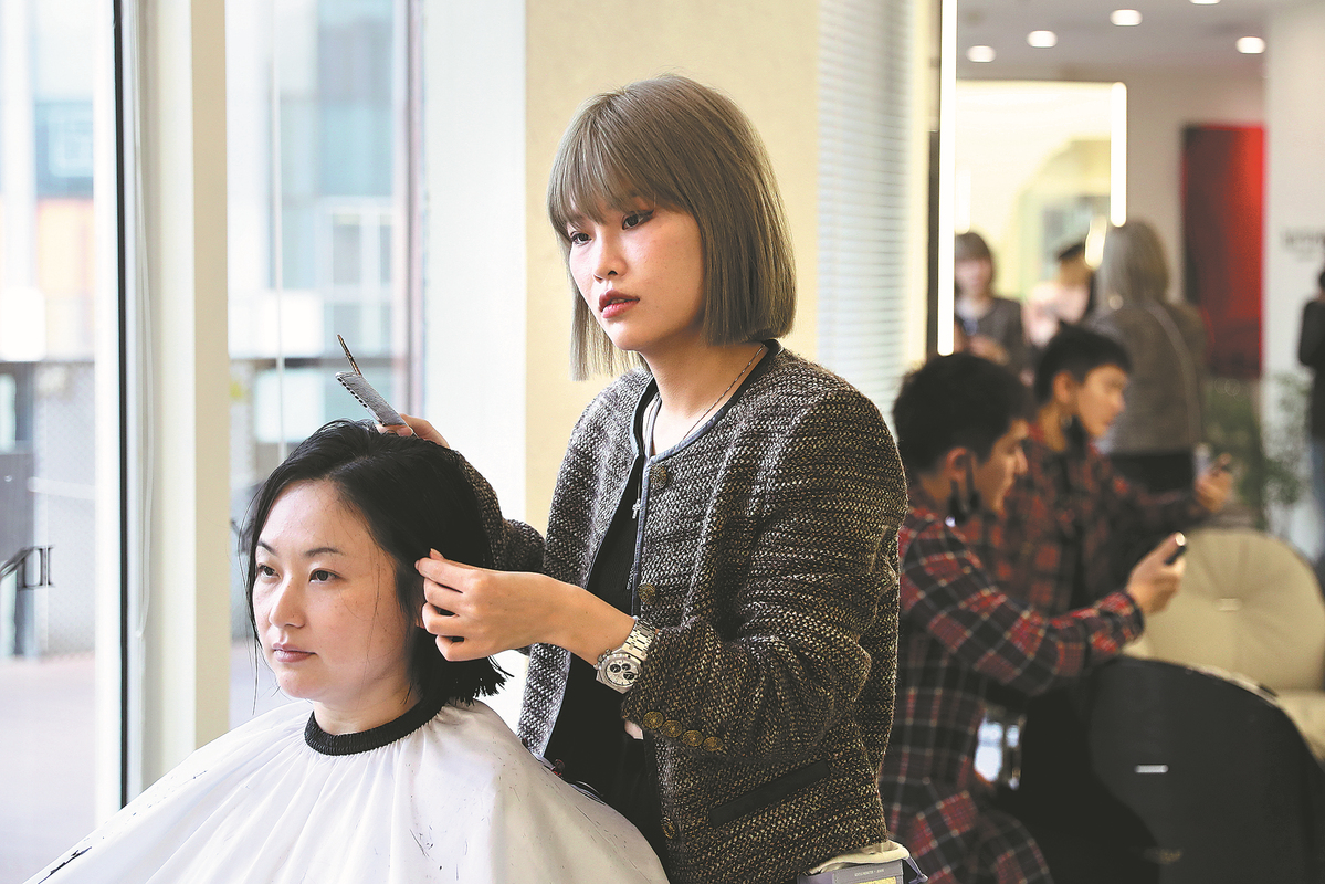 Bai Yaxin cuts a customer's hair at the InStyle Hair Salon in the Sanlitun area in Beijing in October. WANG JING/CHINA DAILY