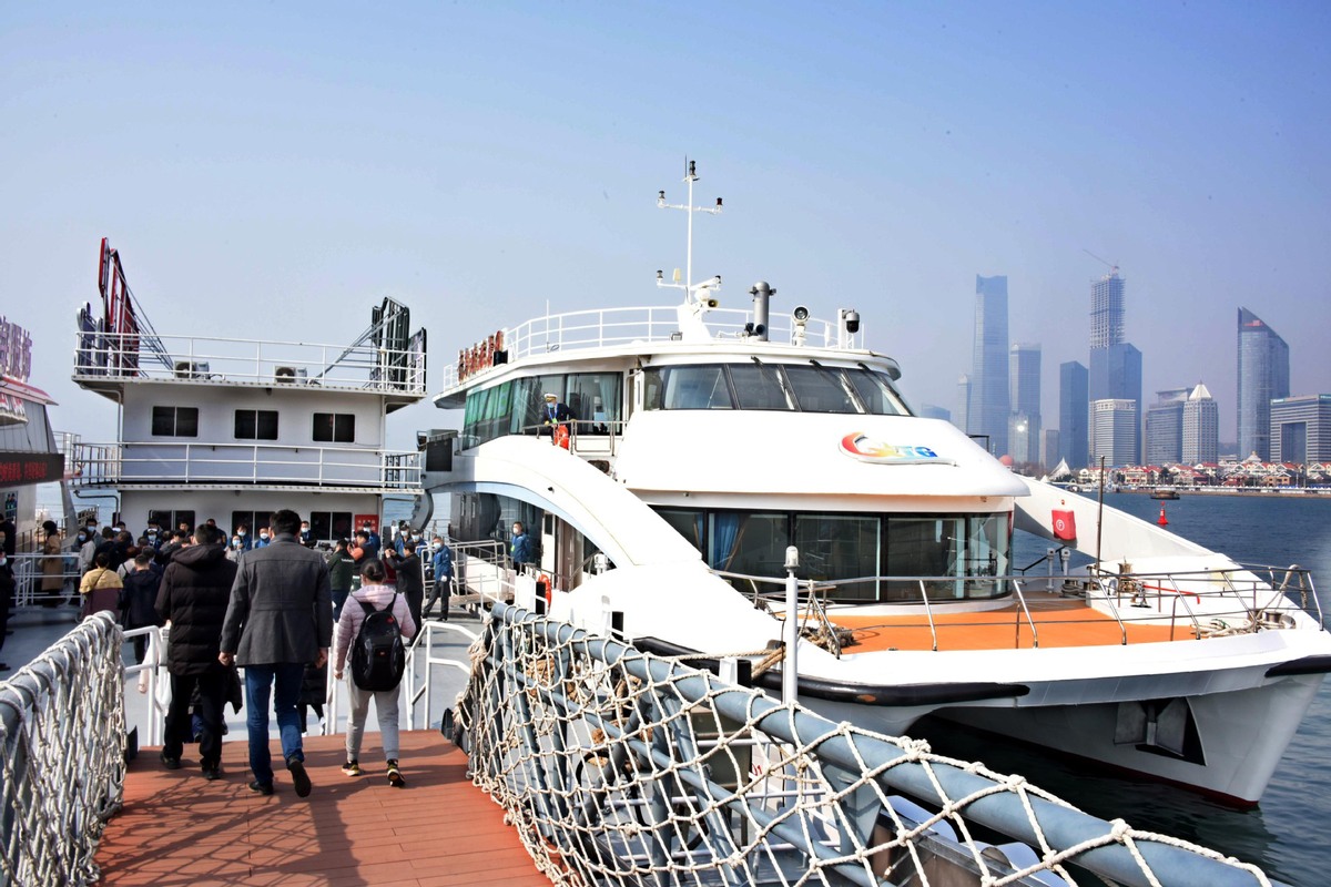 Travelers are ready to board a cruise ship at a cruise wharf of Qingdao Olympic Sailing Center in Qingdao, Shandong province, March 27, 2023. [Photo/Xinhua]