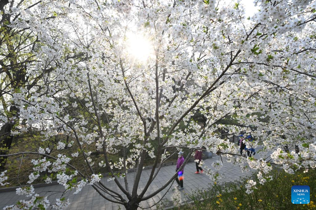 This photo taken on March 29, 2023 shows cherry blossoms at the Yuyuantan Park in Beijing, capital of China. (Xinhua/Yin Dongxun)