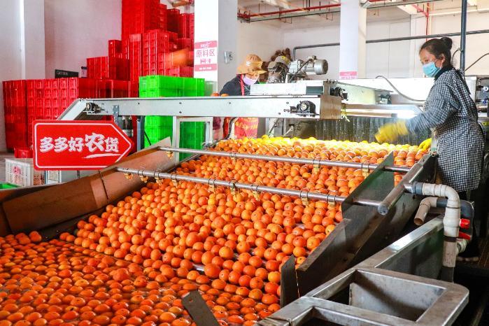 As orah mandarins have entered the harvest season in Xinping lately, Rao has been busy checking the operation of the processing plant’s production line, which sorts out the fruits according to their size, sugar content, shape, and appearance. After these orah mandarins are packaged, they will be sold through Rao’s cooperative partner Yu Xianwei, also born in the 1990s, who runs a store on Chinese e-commerce platform Pinduoduo.